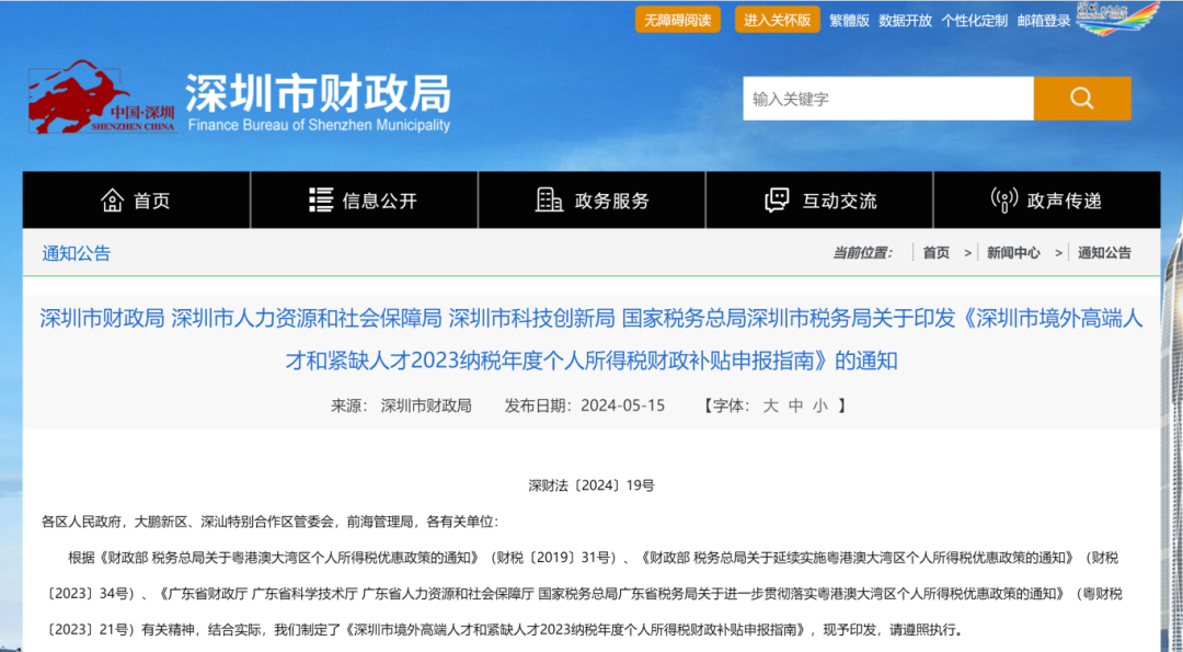 深圳市境外高端人才和紧缺人才2023纳税年度个人所得税财政补贴申报开始啦~具体如何申报,麦克劳务派遣一起来看看吧!