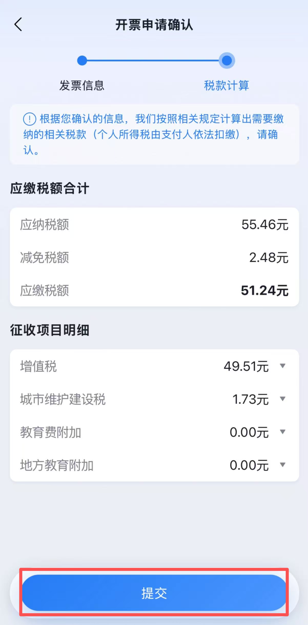 3.确认无误后,点击【提交】完成代开申请信息提交。