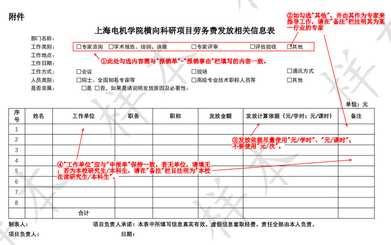非横向科研项目发放信息表 横向科研项目发放信息表 4、临时聘用人员备案表 科研项目发放校外劳务费,除参与项目研究的教职工、研究生、博士后、访问学者之外,项目临时聘用的校外人员需附临时聘用人员备案表。